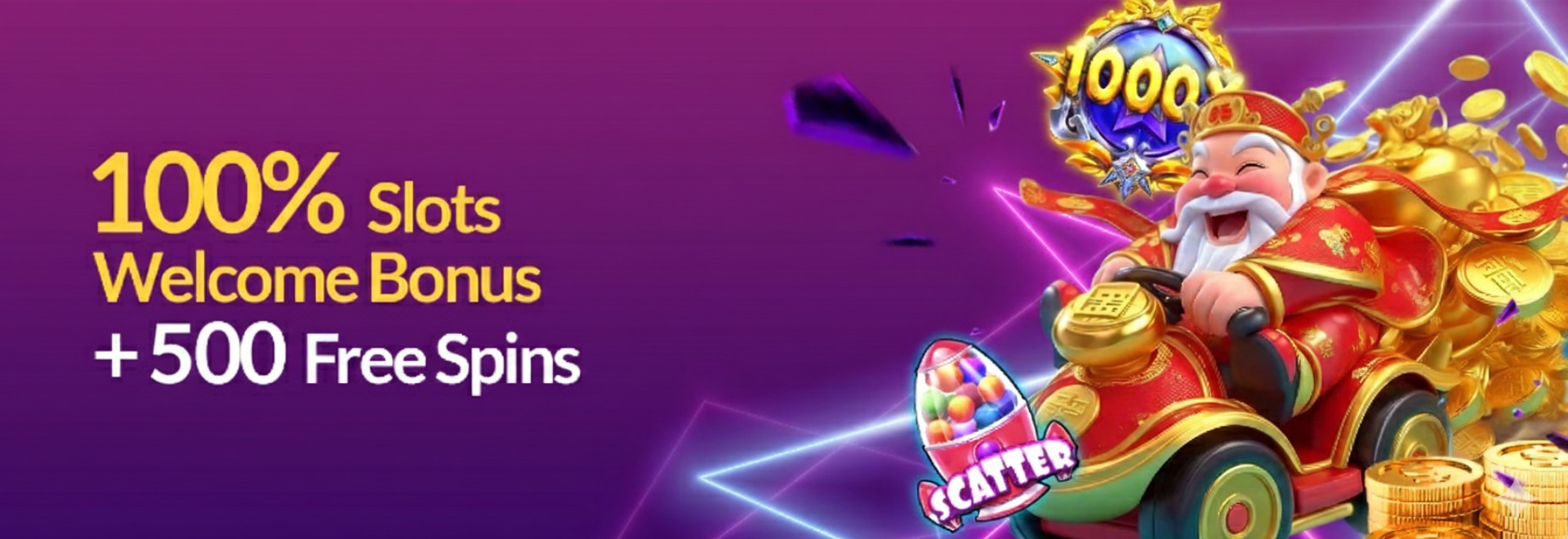100% SLOTS WELCOME BONUS + 500 FREE SPINS